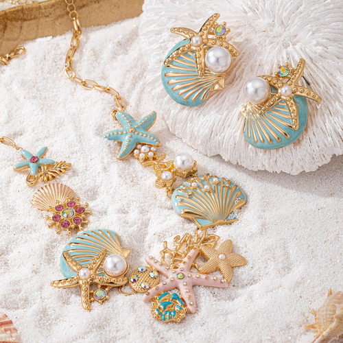 Ocean-Themed Starfish Seashell Coral Charm Jewelry