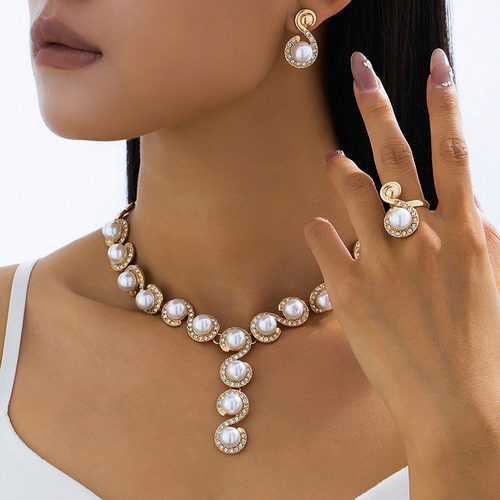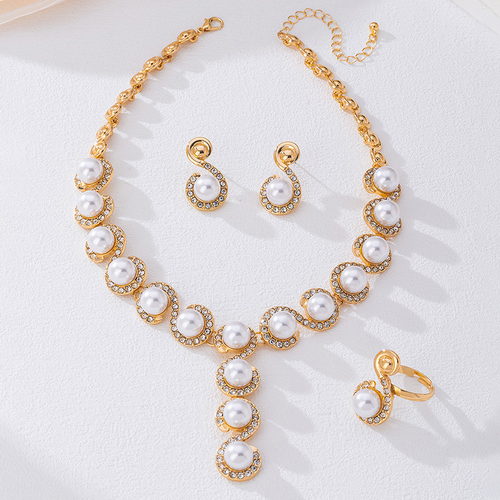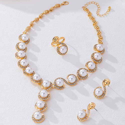 Gold Shaped Rhinestone Pearl Charm Jewelry Set