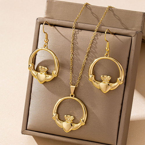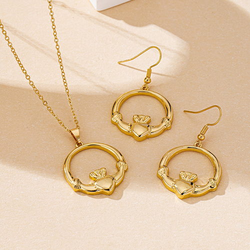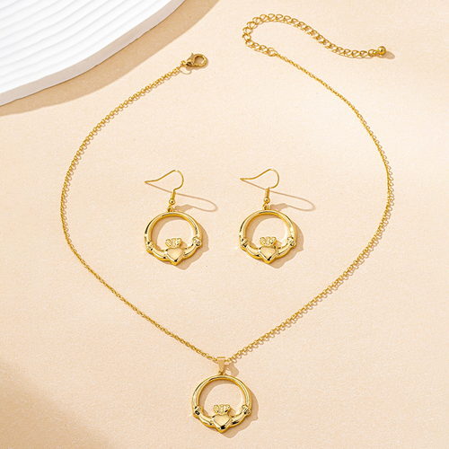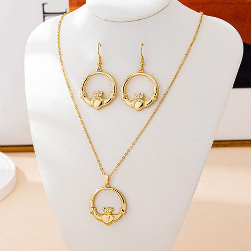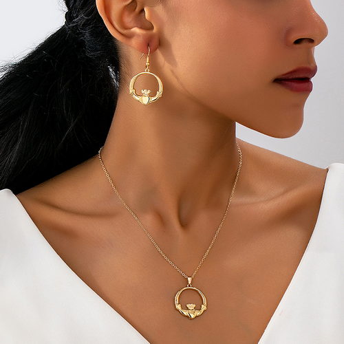 Gold Crown Pendant Earrings Necklace Set