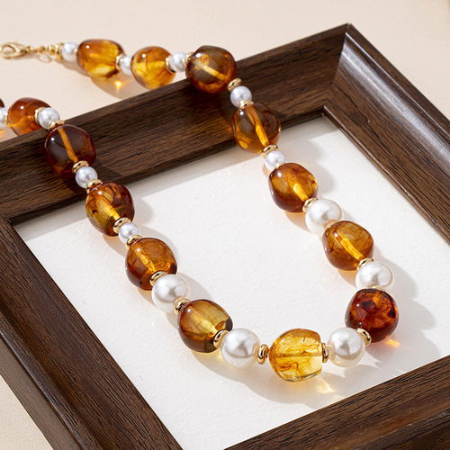 Vintage Brown Acrylic Beaded Choker