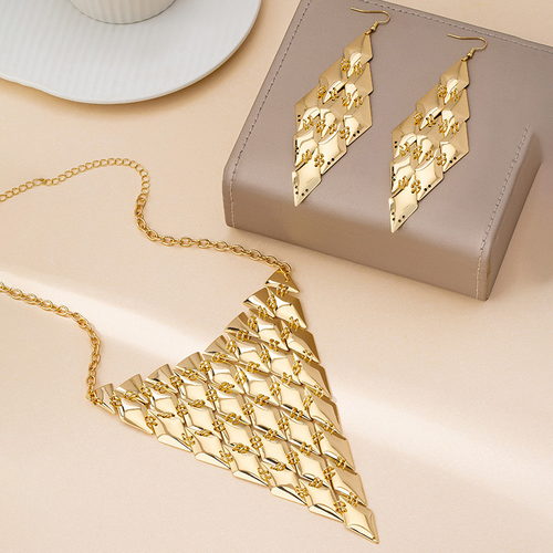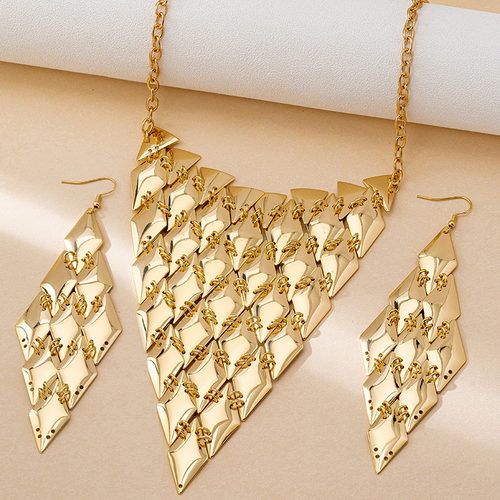 Gold Diamond-shaped Metal Draping Earrings Necklace Set